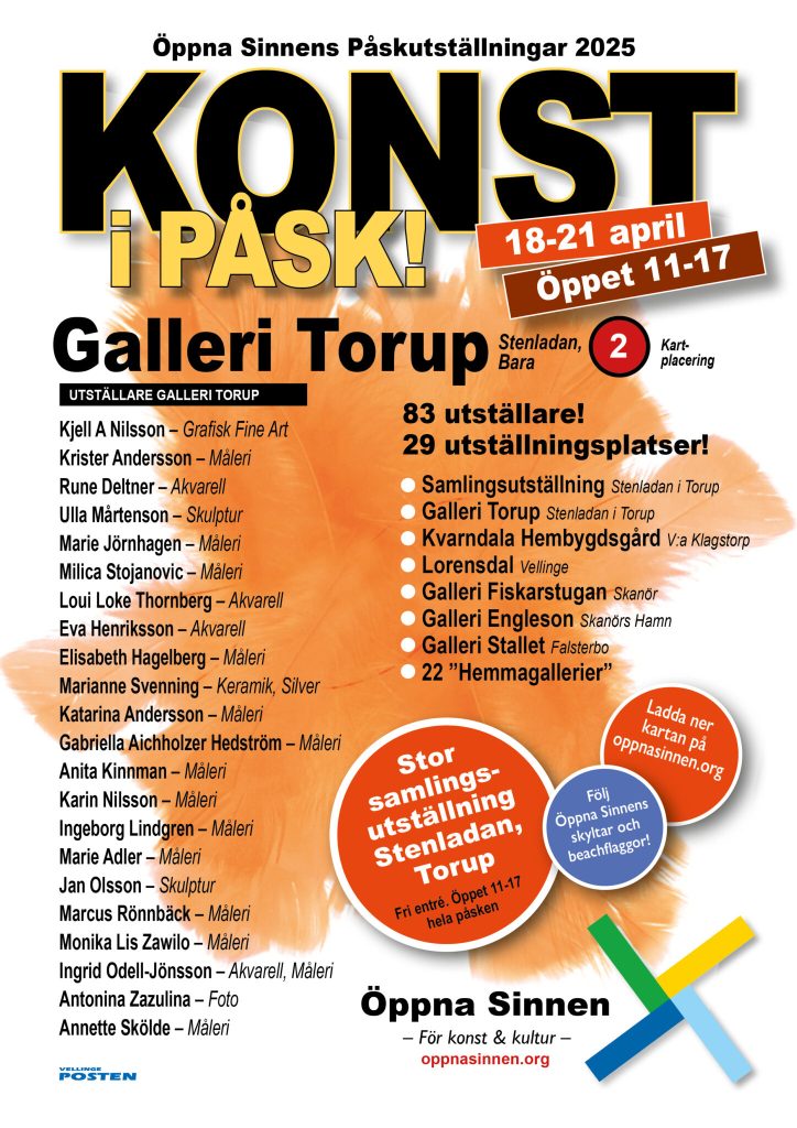 Detta året är jag (som vanligt) med i Öppna Sinnens konstrunda, och ställer ut i Stenladan i Torup, utanför Malmö. Där finns också konstrundans gemensamma samlingsutställning, dvs där finns väldigt mycket konst att se. Varmt välkomna dit, och kombinera besöket med en promenad i bokskogen! Naturen där är alldeles magisk nu på våren! Jag kommer att vara där alla dagarna. Hoppas att vi ses!